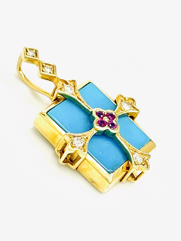 Exquisite 1.00-gram Turquoise Pendant, meticulously handcrafted to perfection. A spectacular piece of art in progress that brings together the vibrancy of natural turquoise and the elegance of fine jewelry design. Adorned with the captivating colors of the sea and sky, this pendant adds a touch of refined charm to any outfit. An enchanting accessory that beautifully captures the spirit of artisan craftsmanship.