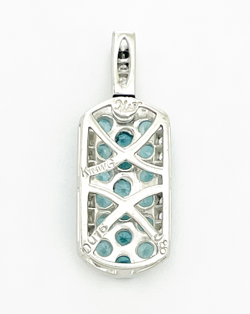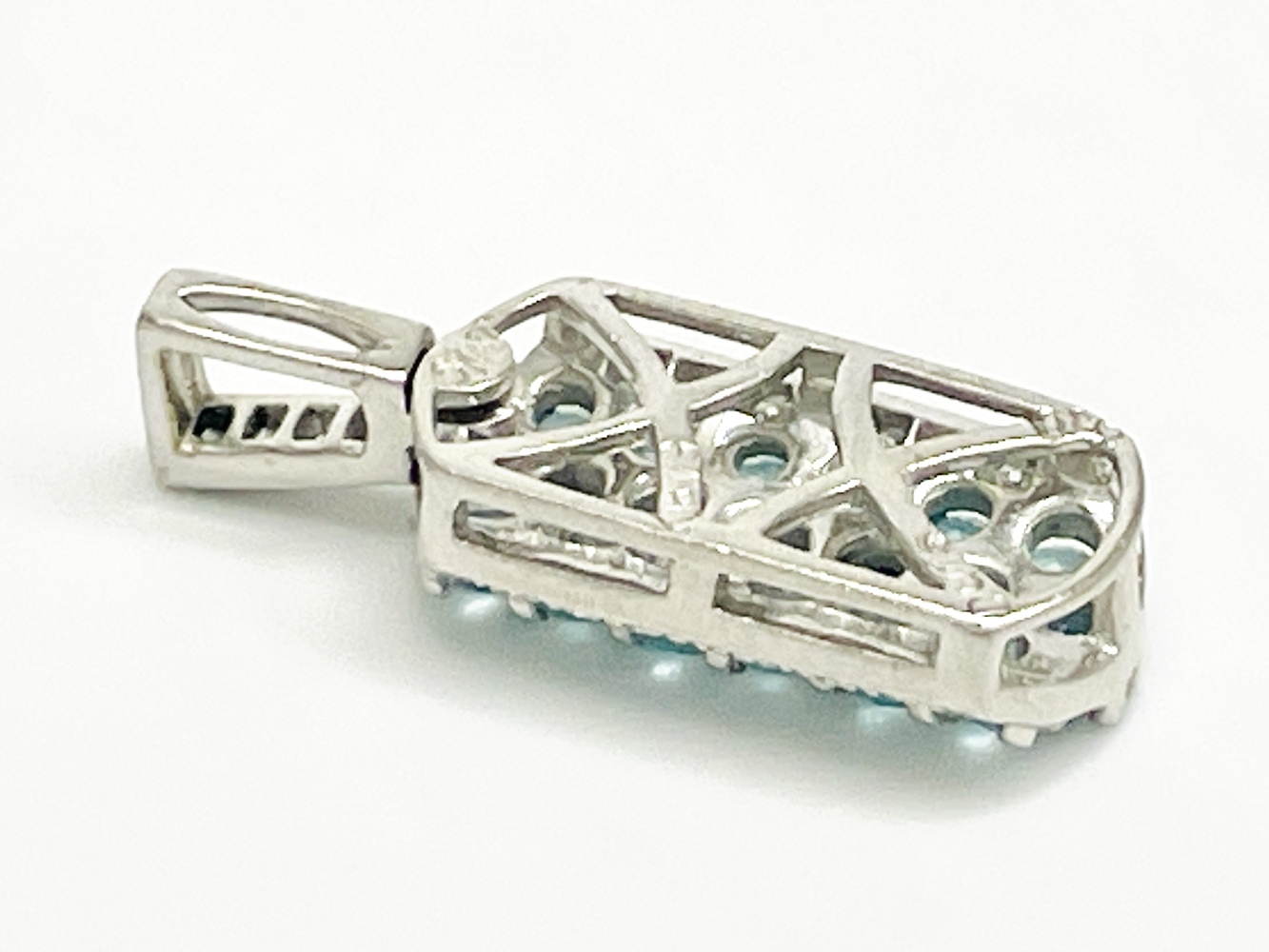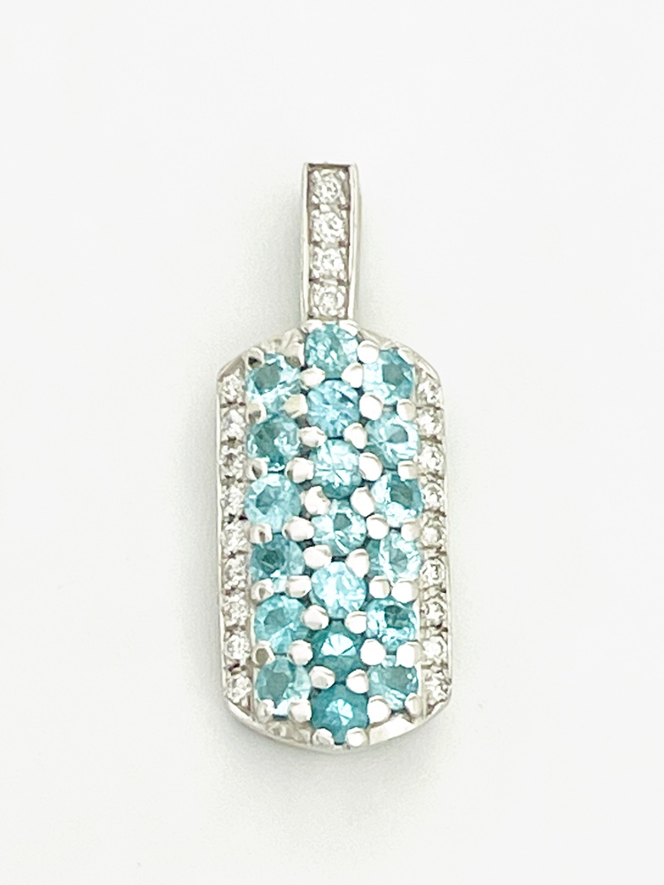 Exude elegance with this stunning 18K white gold pendant. Weighing a delicate 3.6 grams and holding an enchanting blue topaz, it is a treasure worth possessing. With an approximate .16 ctw, this pendant promises not only quality but also luxurious charm. Its fine craftsmanship and timeless design make it a captivating addition to any jewelry collection.
