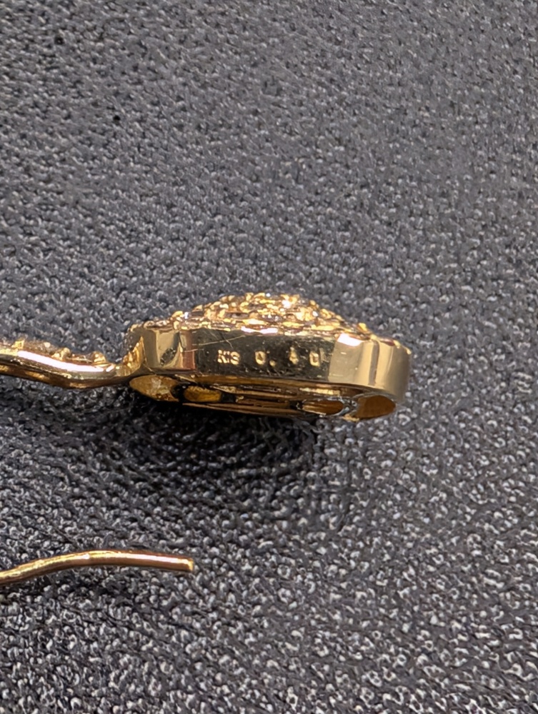 Indulge in exquisite luxury with our 18K Yellow Gold masterpiece adorned with 146 natural round diamonds, Approx. .40 ctw. Flaunting a near colorless hue reflecting subtlety and opulence, these stunning gemstones weigh 2.60 grams. This beautifully crafted piece presents the perfect blend of impeccable quality and timeless elegance.
