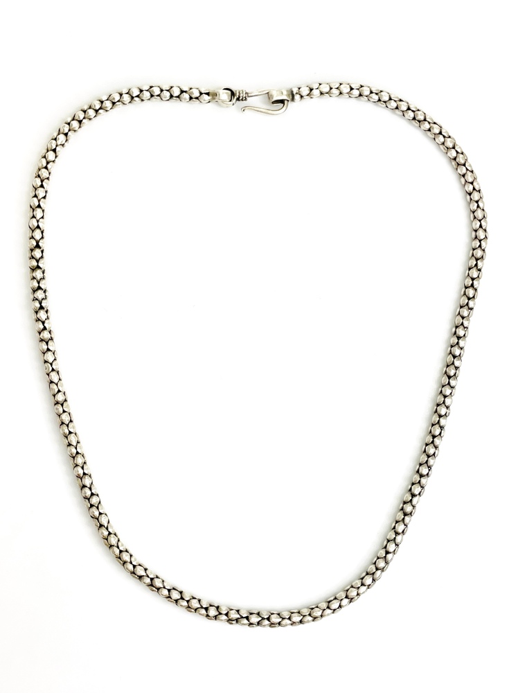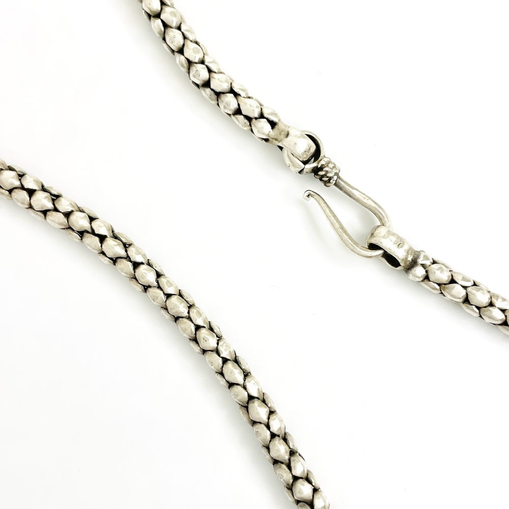 Illuminate your elegance with this remarkable Sterling Silver Necklace, weighing 27.30 grams and measuring 18 inches. A fine demonstration of artistry and refined taste, its exquisite design hails timeless grace, captivating the room with its sterling charisma. Adorn your neckline with this sophisticated piece and let every moment be a statement of your unique style. An epitome of luxury, this necklace undoubtedly adds an enchanting allure to your ensemble.
