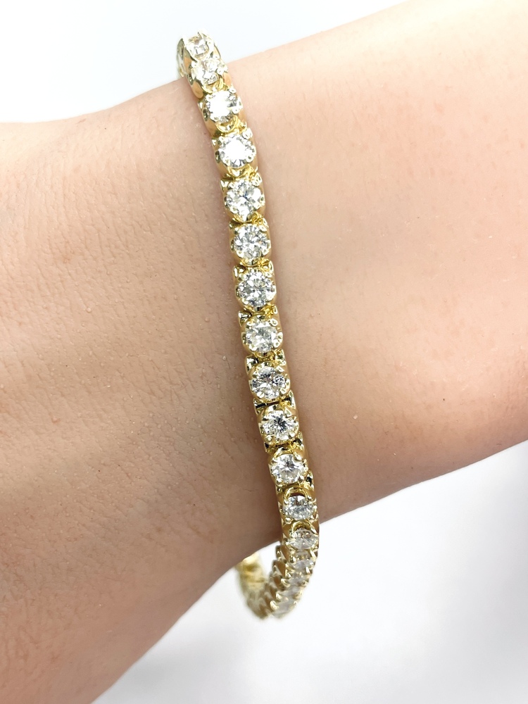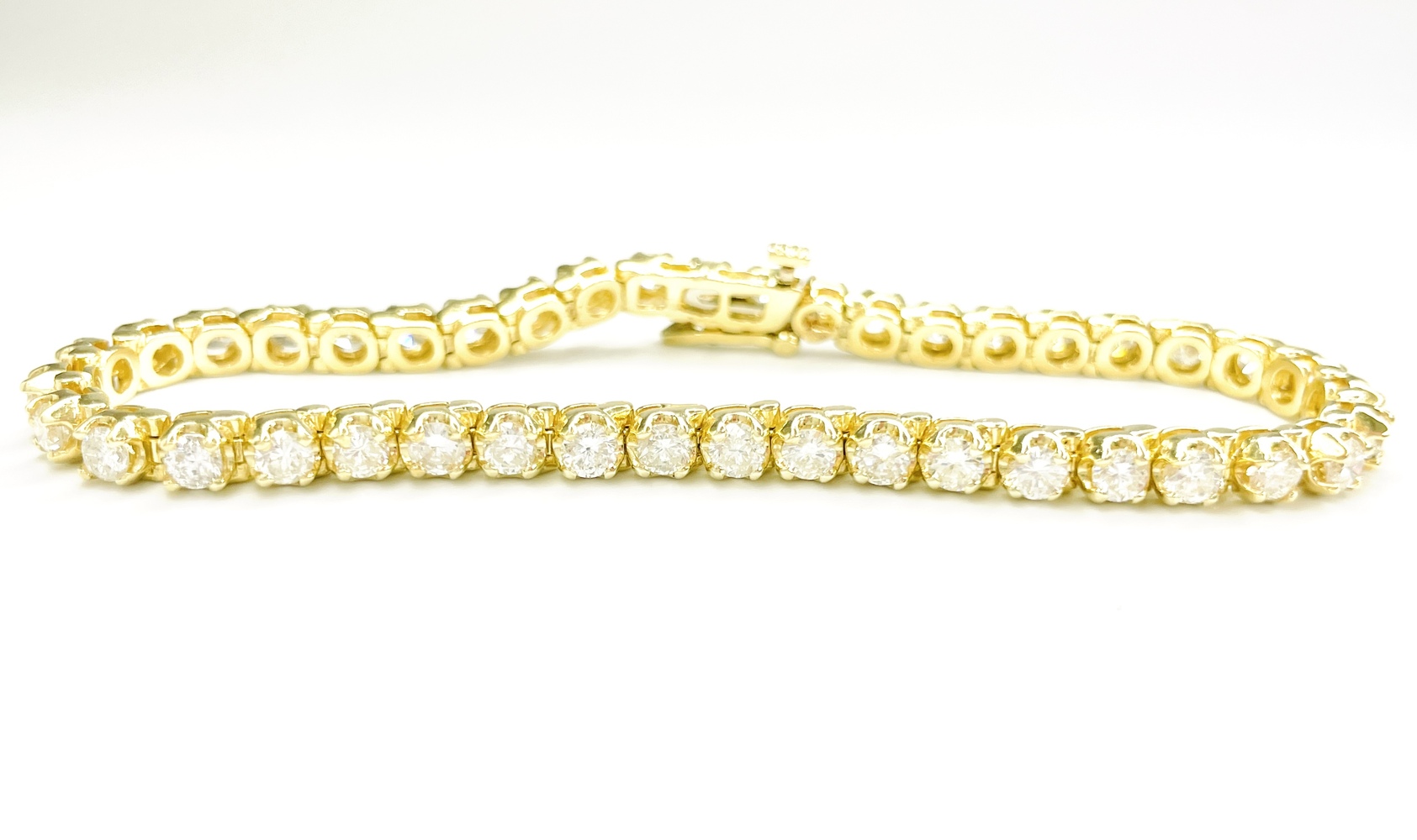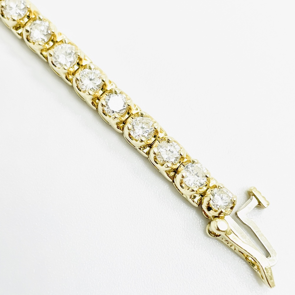 Experience endless elegance with this 14K Yellow Gold masterpiece. Spanning 7 inches, it's adorned with 42 natural, round diamonds weighing approximately 4.00ctw. In SI2-I1 clarity, these near colorless diamonds glisten with a timeless allure. A perfect blend of luxury and sophistication for discerning individuals who appreciate exquisite jewelry.