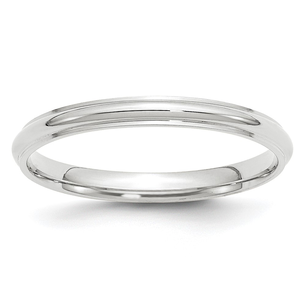 14k White Gold 2.5mm Half Round with Edge Wedding Band Size 6
