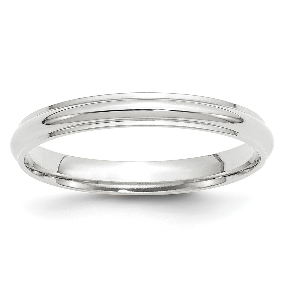 14k White Gold 3mm Half Round with Edge Wedding Band Size 10