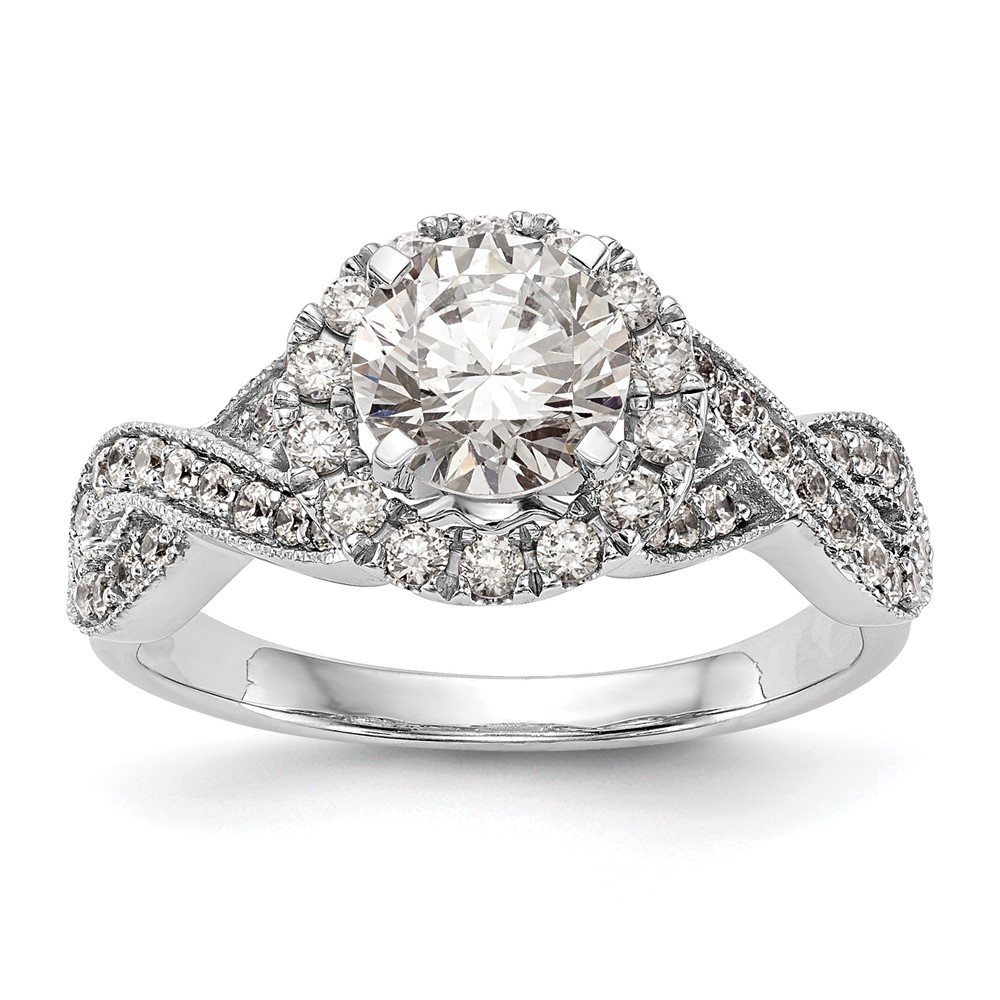 14K White Gold Peg Set Diamond Semi-Mount Halo Engagement Ring