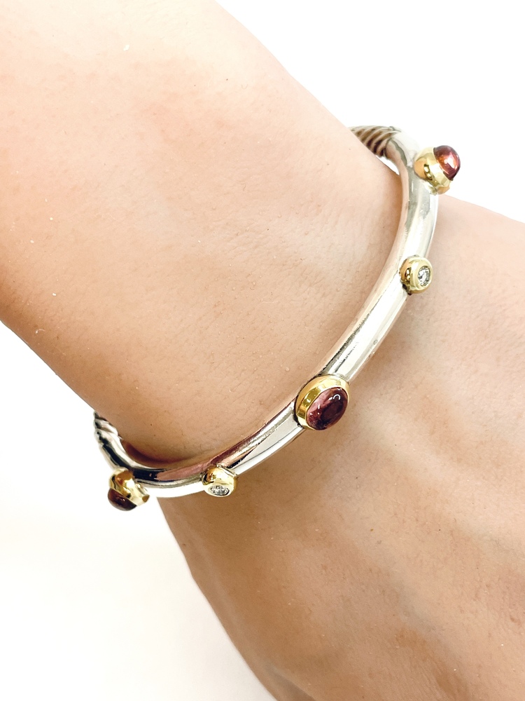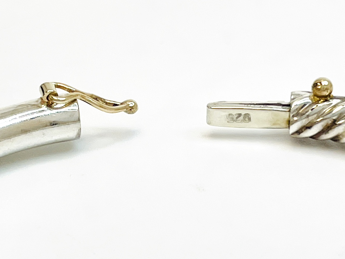 Embrace elegance with this sophisticated Silver 0.925%, 14.42g Bracelet 925/185 Bangle. Crafted with meticulous precision, this stunning piece is a true product of luxury and refinement. Its creator, renowned designer David Yurman, conjures an air of timeless elegance with this remarkable signature accessory. The perfect blend of allure and charm, it's an exquisite addition to any thoughtful jewelry collection. It isn't just a bracelet, but a statement of style and sophistication.
