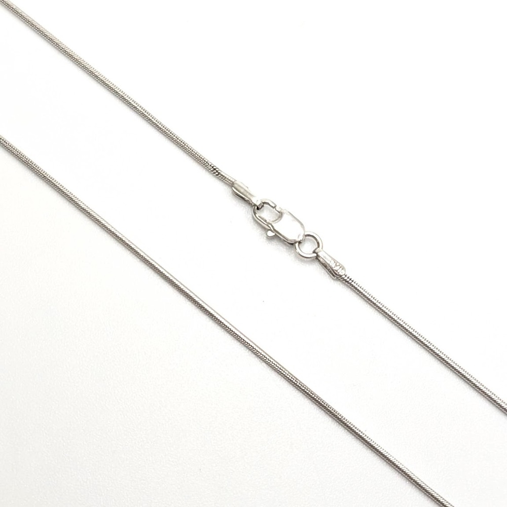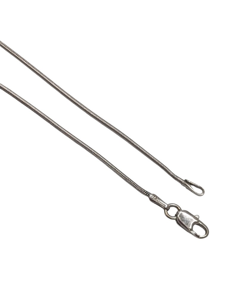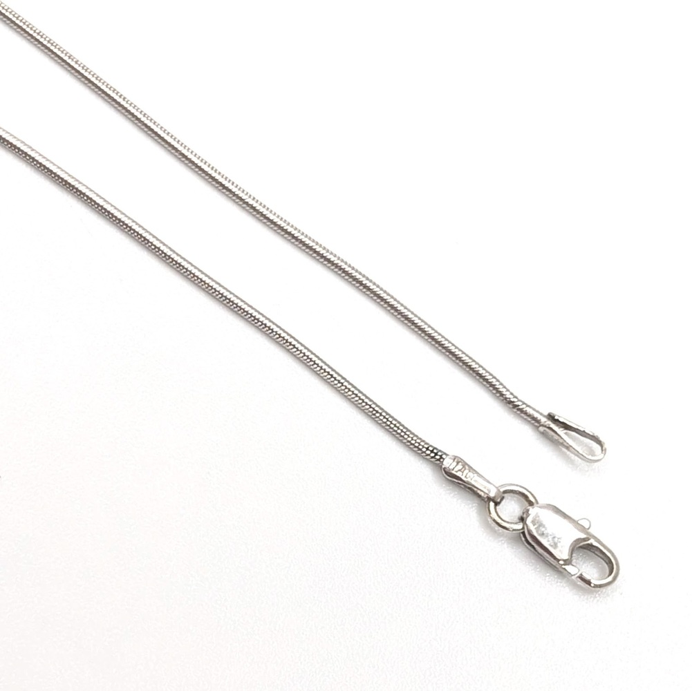 Adorn your neckline with an aura of elegance with our 14K White Gold Snake Chain. Weighing a delicate 4.01 grams and extending 18, this exquisite piece blends tasteful sophistication and effortless grace. This timeless accessory brings a touch of luxury to any attire, making it a perfect gift or a sublime addition to your personal collection.
