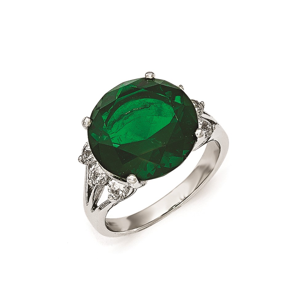 Cheryl M Sterling Silver AAA CZ and Glass Simulated Emerald Ring