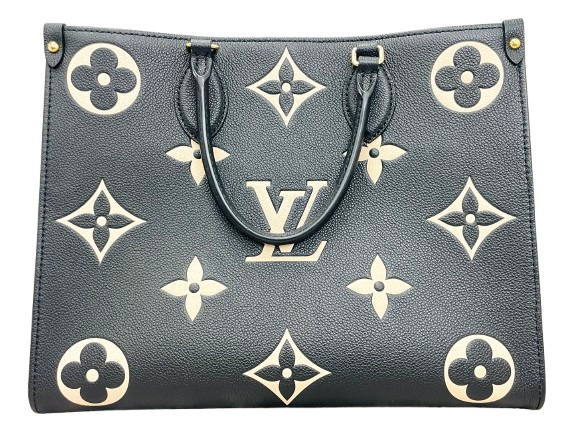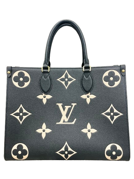'Unveiling the fusion of style and practicality: Louis Vuitton Monogram Giant OnTheGo MM. An epitome of luxury, its audacious Giant Monogram print harmoniously fuses with the petite Monogram on the reverse for a captivating twist. Perfect for the chic globetrotter; its spacious design effortlessly accommodates daily essentials. Elegance truly meets convenience in this exclusive, limited-edition arm candy. Make a grand statement with this accomplice to your chic ensemble.'
