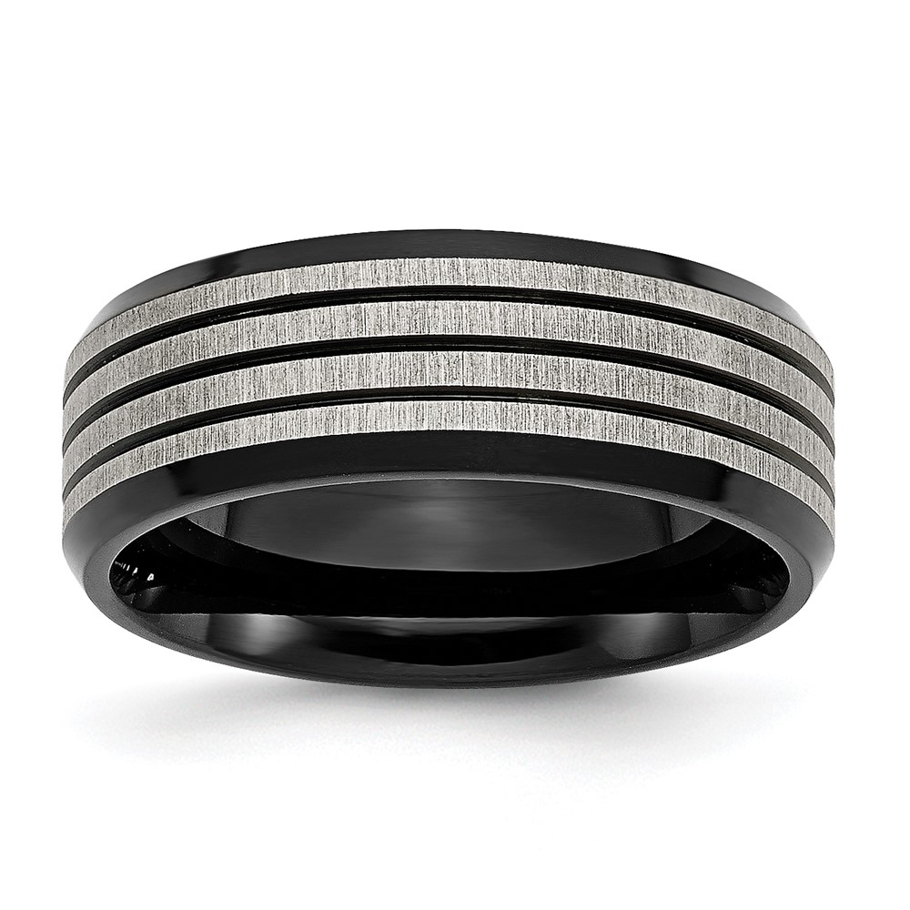 Chisel Stainless Steel Brushed and Polished Black IP-plated Striped 8mm Band