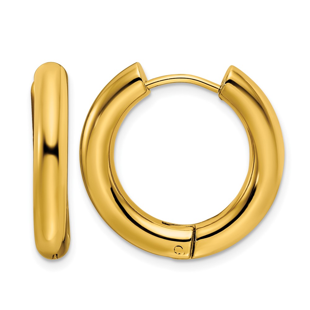 Chisel Stainless Steel Polished Yellow IP-plated 4mm Hinged Hoop Earrings