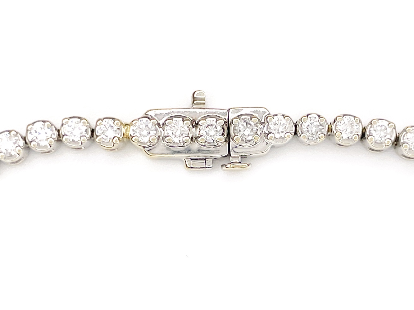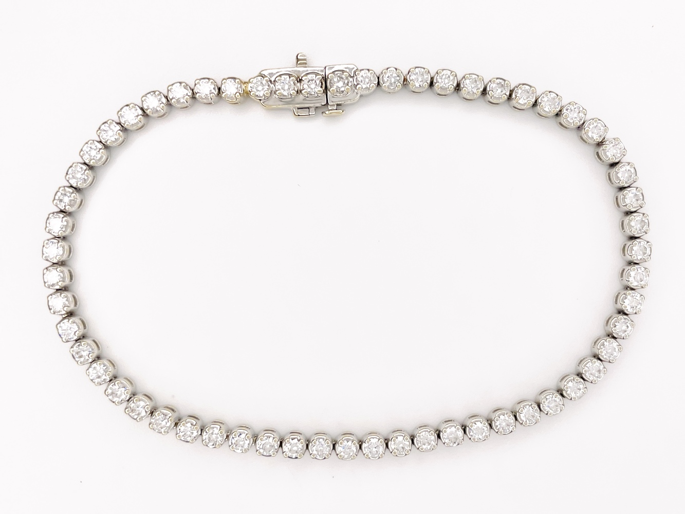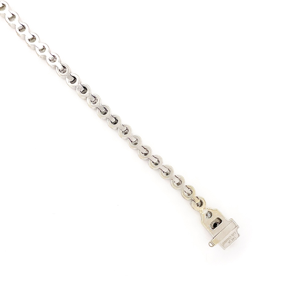 Experience elegance and luxury with this stunning White Gold Tennis Bracelet, crafted to perfection with the purest 14K metal. Home to 59 exquisite lab-grown diamonds, approximately 2.0 carats, in Lab Grown VS-White clarity. The diamonds' shape is in harmony with their clear purity, emitting a stunning sparkle against the pristine, polished white gold. Measuring a graceful 7 inches, this bracelet is a timeless addition to anyone's jewelry collection.