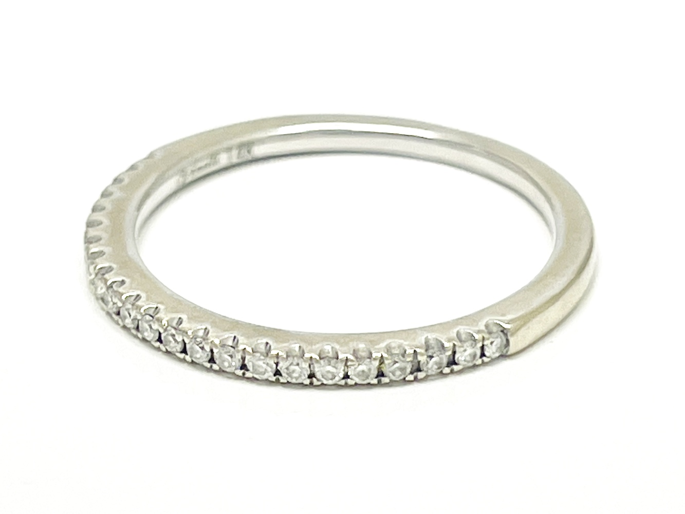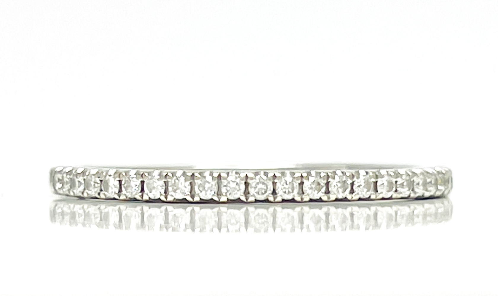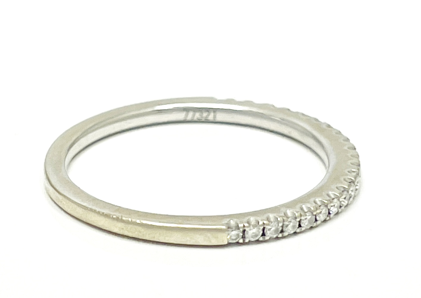 Embrace elegance with this stunning 14K white gold ring, tastefully adorned with 23 exquisite round diamonds. These near colorless, SI1 natural diamonds cumulatively express an approximate weight of .23 ctw. This eloquently crafted piece, with a finger size of 4.25, unites its lustrous charm with the fascinating sparkle of diamonds to create the epitome of refined beauty.