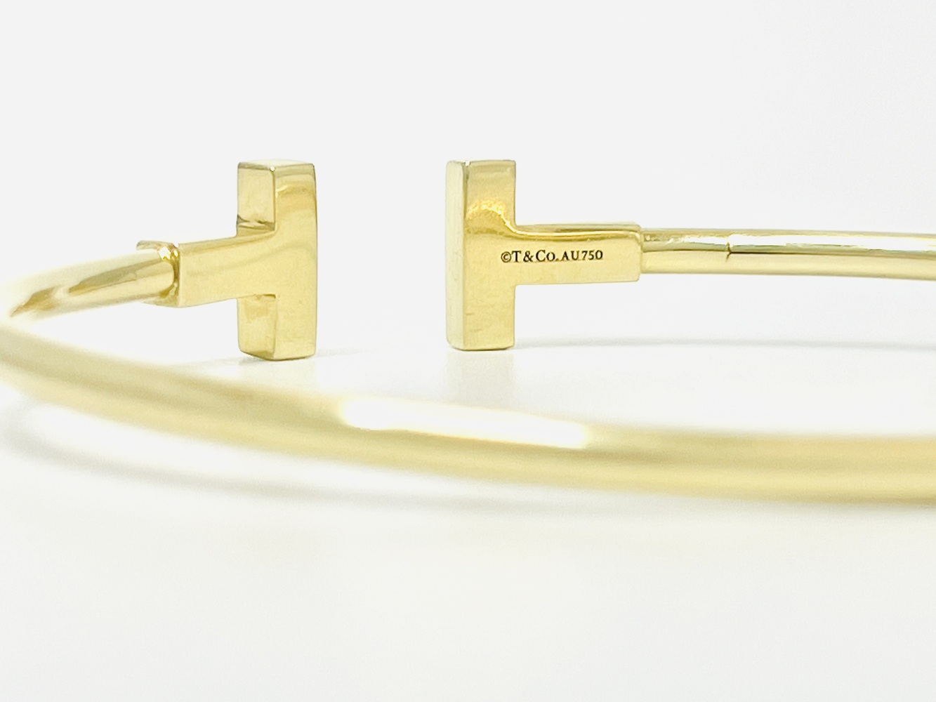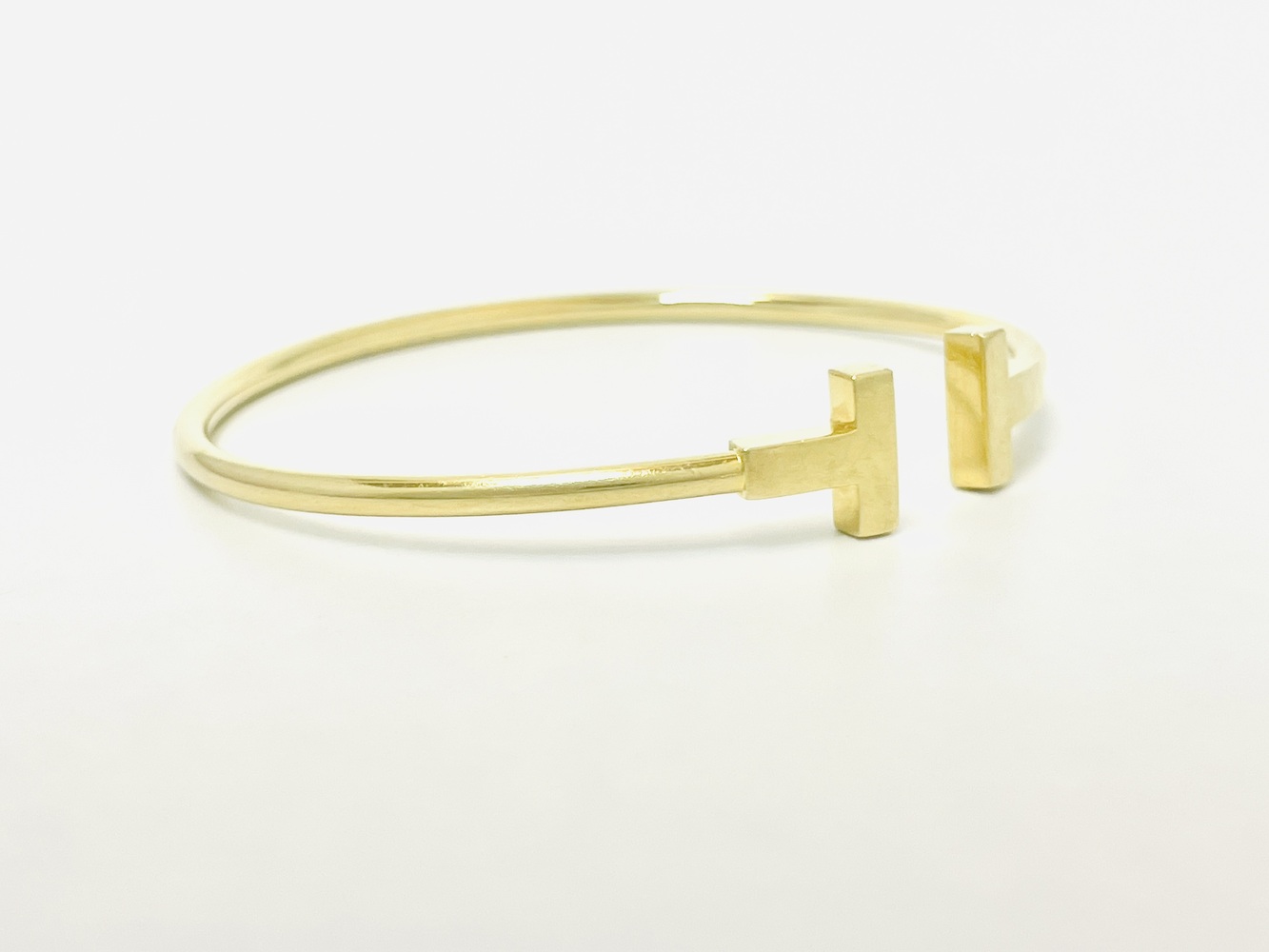 Discover the epitome of timeless elegance with this Tiffany & Co. 18K Gold T Wire Bracelet. A whisper of luxury at 7 inches, this piece masterfully blends sophistication and modernity. Artfully nestled in its signature box, this bracelet isn't just a beautiful accessory; it's an expression of exquisite craftsmanship. Embrace the allure of Tiffany & Co. and let its gleaming beauty transform every moment into a cherished memory.
