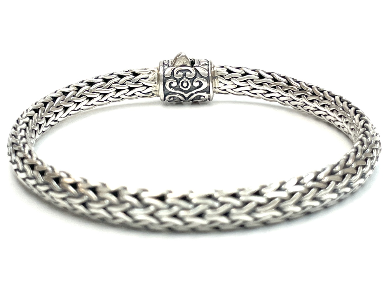 Presenting the breathtaking John Hardy Bracelet, meticulously crafted in 18K Yellow Gold & .925 Silver, lavishly adorned with 9 exquisite Near Colorless Natural Round Diamonds totaling approximately .10 ctw. The 7.25" long bracelet encapsulates an effortless blend of opulence and style, reflecting timeless sophistication. This radiant accessory epitomizes Hardy's exquisite craftsmanship, delivering an eternal statement of elegance and luxury.