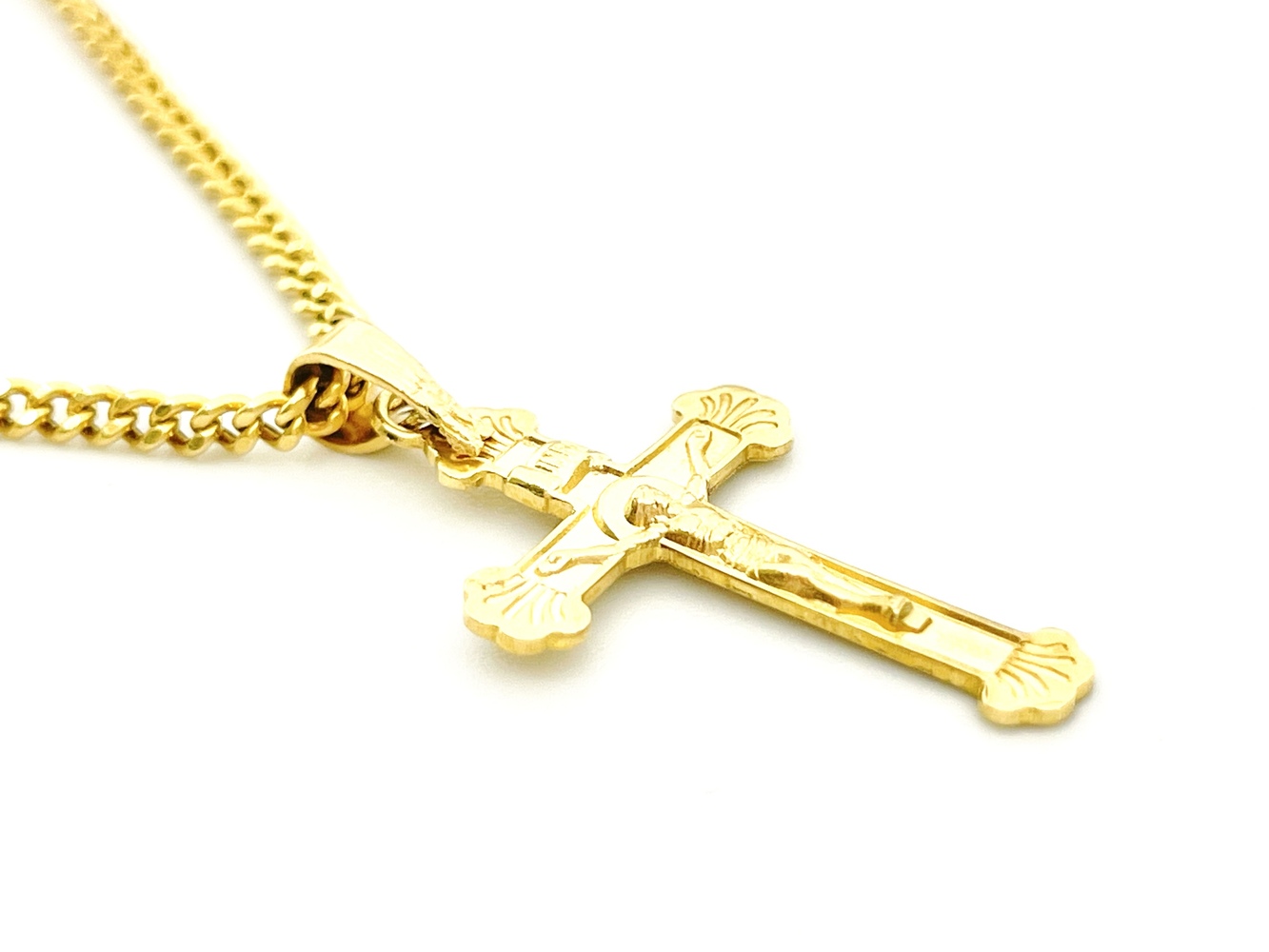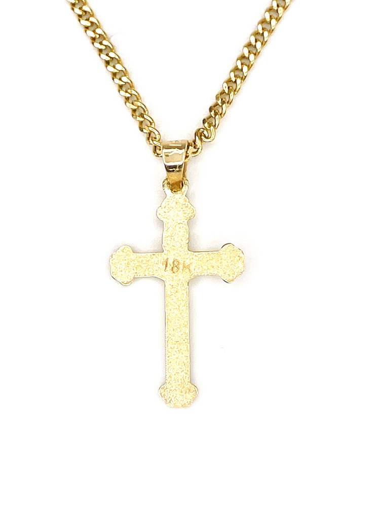 Experience unparalleled elegance with this stunning 18K Yellow Gold Cross & Chain Necklace. Savor its intricate craftsmanship and timeless design, extending 18 inches in length. Exuding sophistication and spirituality, it invites admiration in every glimpse. Perfect for adding a touch of divine grace to any ensemble, it makes a magnificent keepsake or an unforgettable gift. Embrace the exquisite allure of this classic gold treasure.