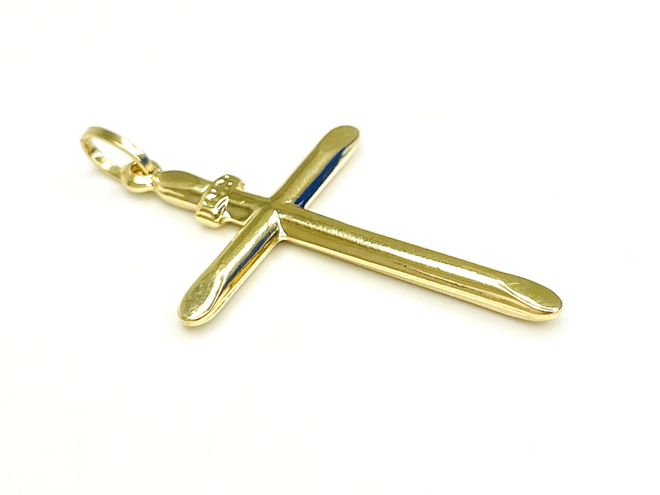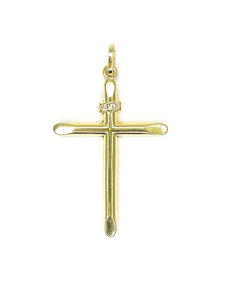 Embrace elegance with this divine 18K Yellow Gold Cross. Lavishly crafted, it is a timeless symbol of faith and devotion with a luxurious touch. The sun-kissed glow of yellow gold adds a rich dimension to this religious emblem, making it a sophisticated piece of jewelry. A testament to the perfect blend of spirituality and style, this gold cross adds an elegant flourish to any attire.