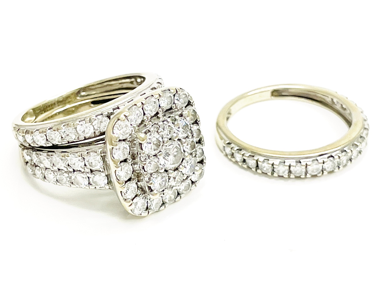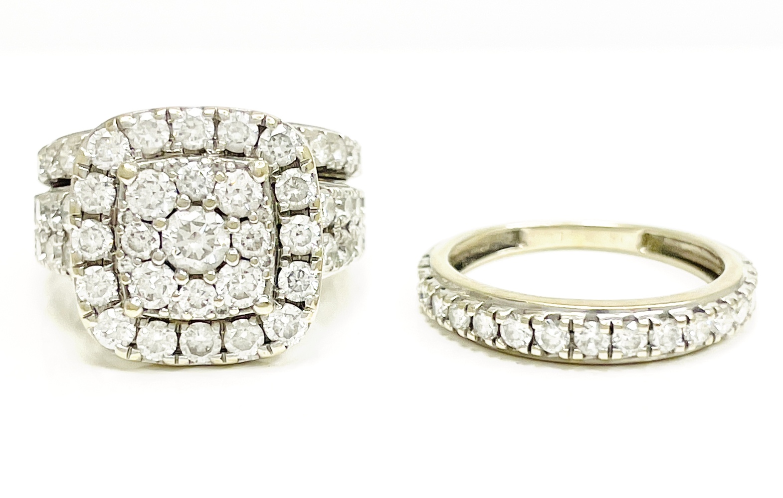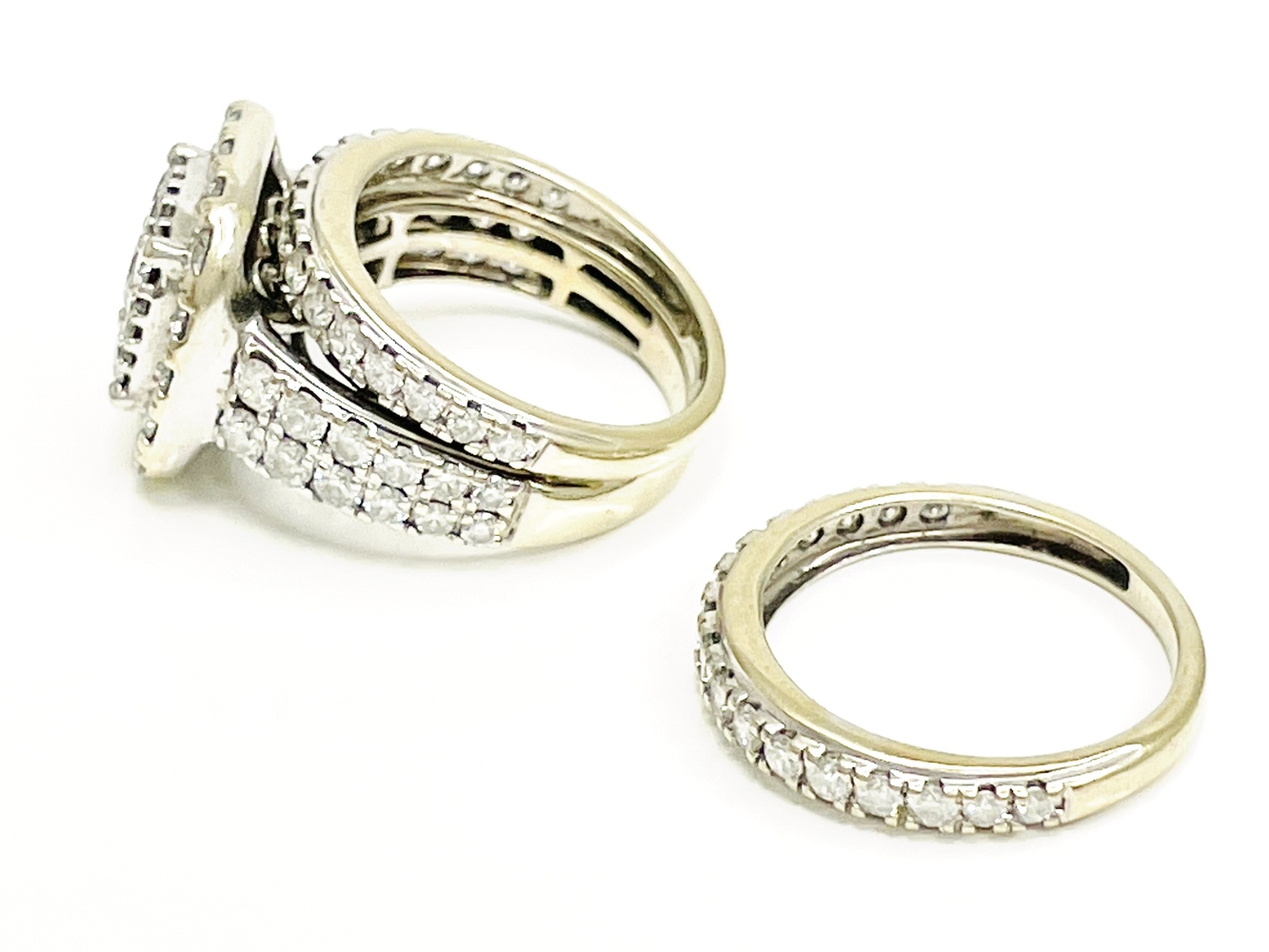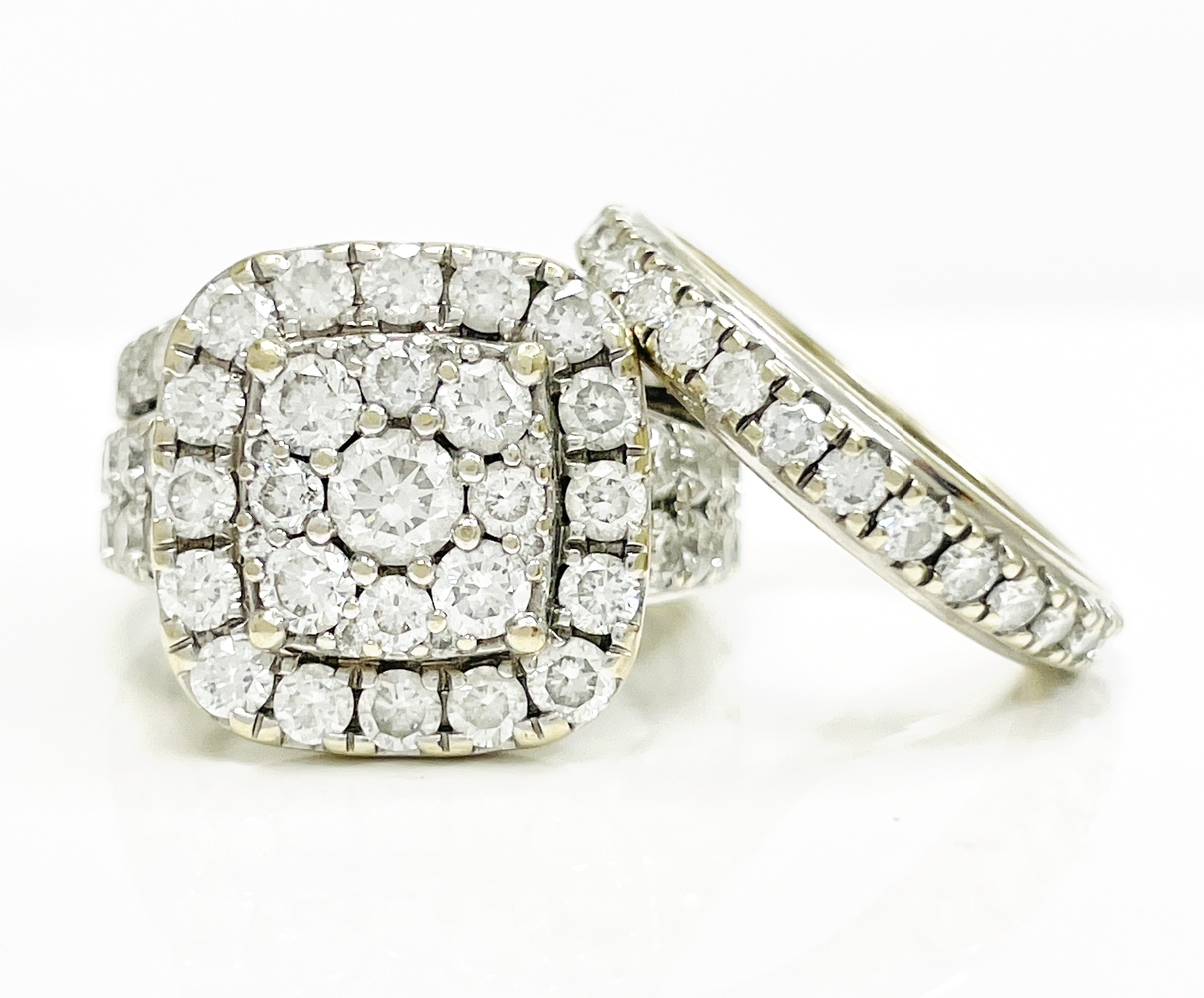 Embodying pure elegance, this majestic 14K White Gold Wedding Set, intricately studded with 83 lab-grown, finely cut natural round diamonds, boasts an impressive 3.50-4.0 carat total weight. Designed for eternal love, its radiant sparkle perfectly complements a sleek size 5.5 finger. A modern masterpiece that captivatingly echoes timeless sophistication.