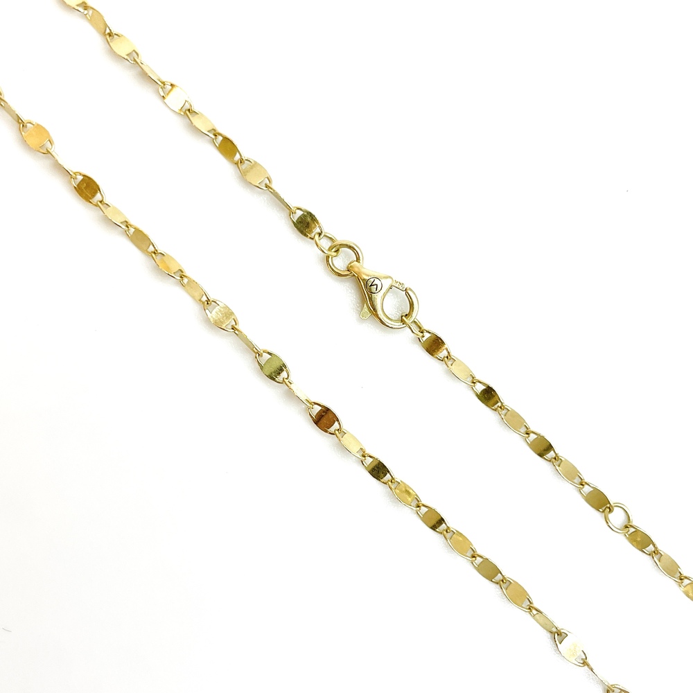 Adorn your neckline with this stunning 14K Yellow Gold Adjustable Mirror Chain. Delicately crafted, it weighs 2.90 grams, offering a blend of comfort and style. This versatile piece can be adjusted to fit 16, 17, or 18, making it the perfect accessory for any outfit. Its elegant design shines with a radiant, golden hue that embodies timeless beauty and sophisticated charm.
