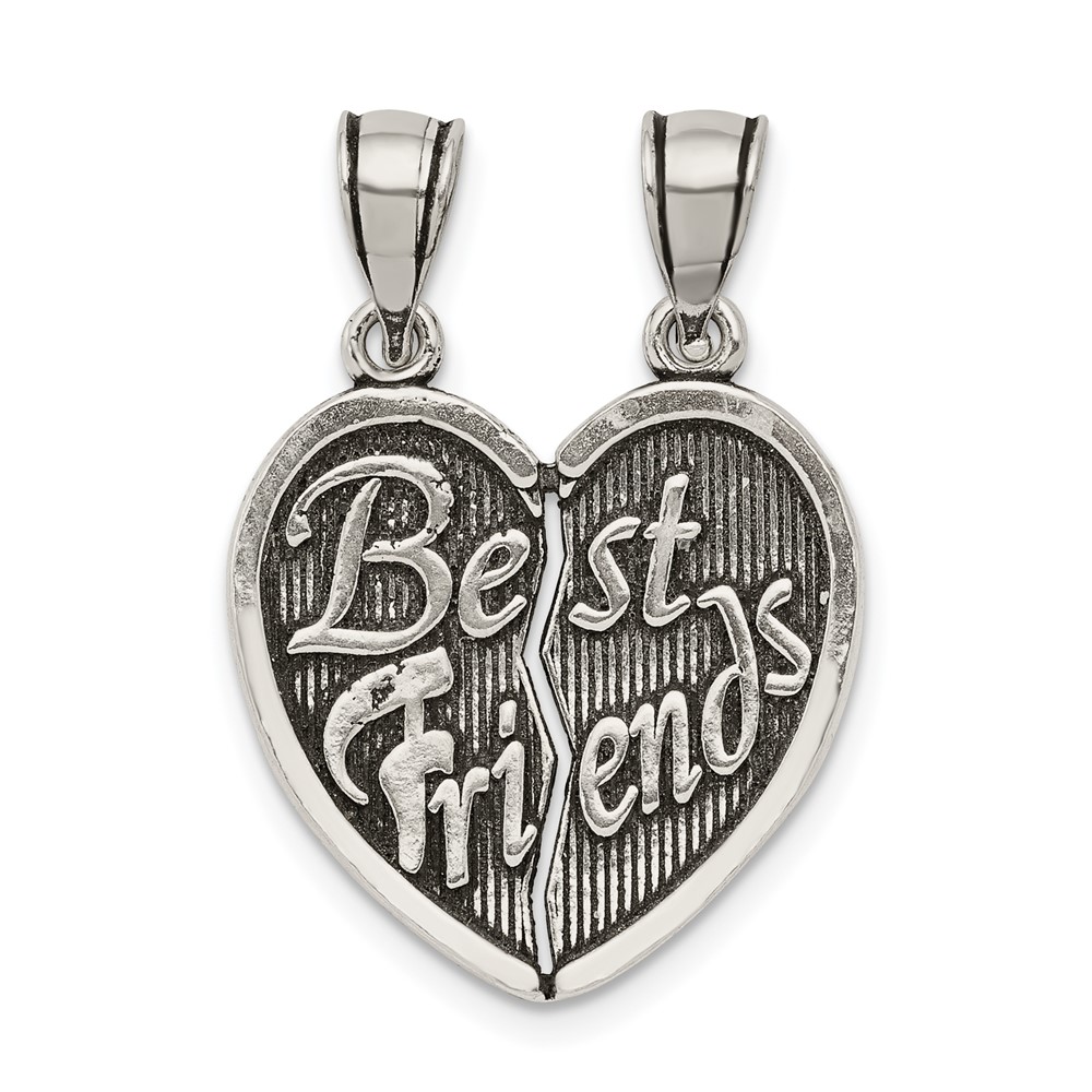 Sterling Silver Antiqued Best Friends Break Apart Heart Pendant