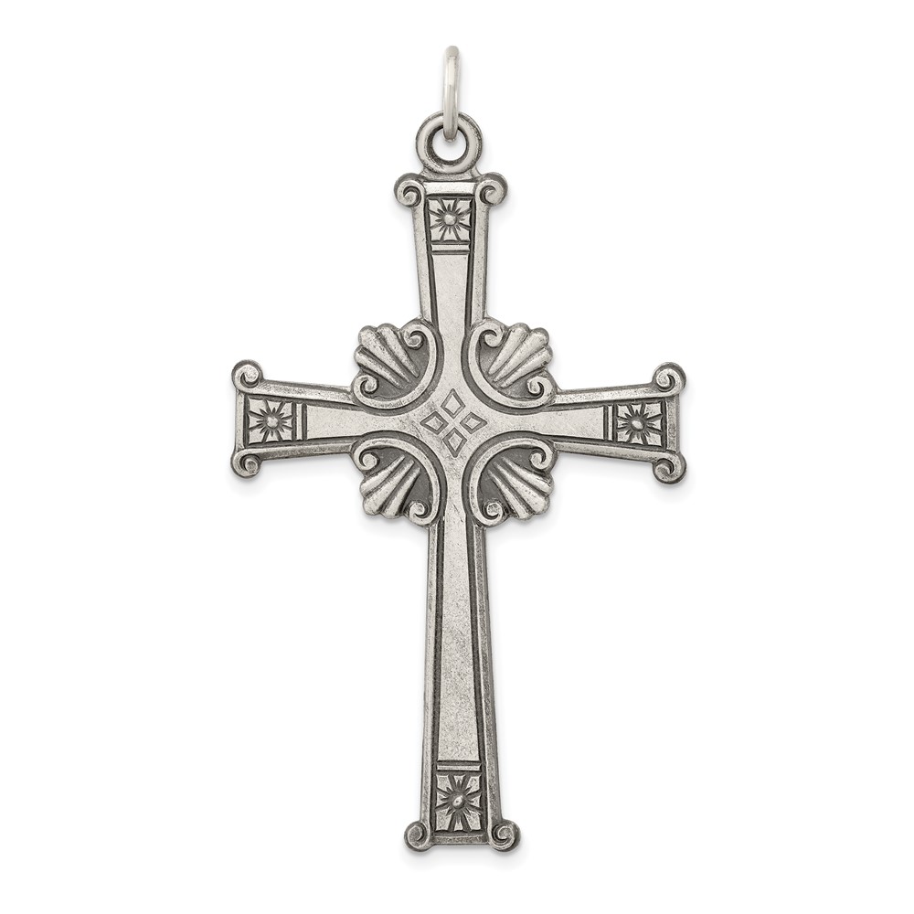 Sterling Silver Antiqued, Textured and Brushed Cross Pendant