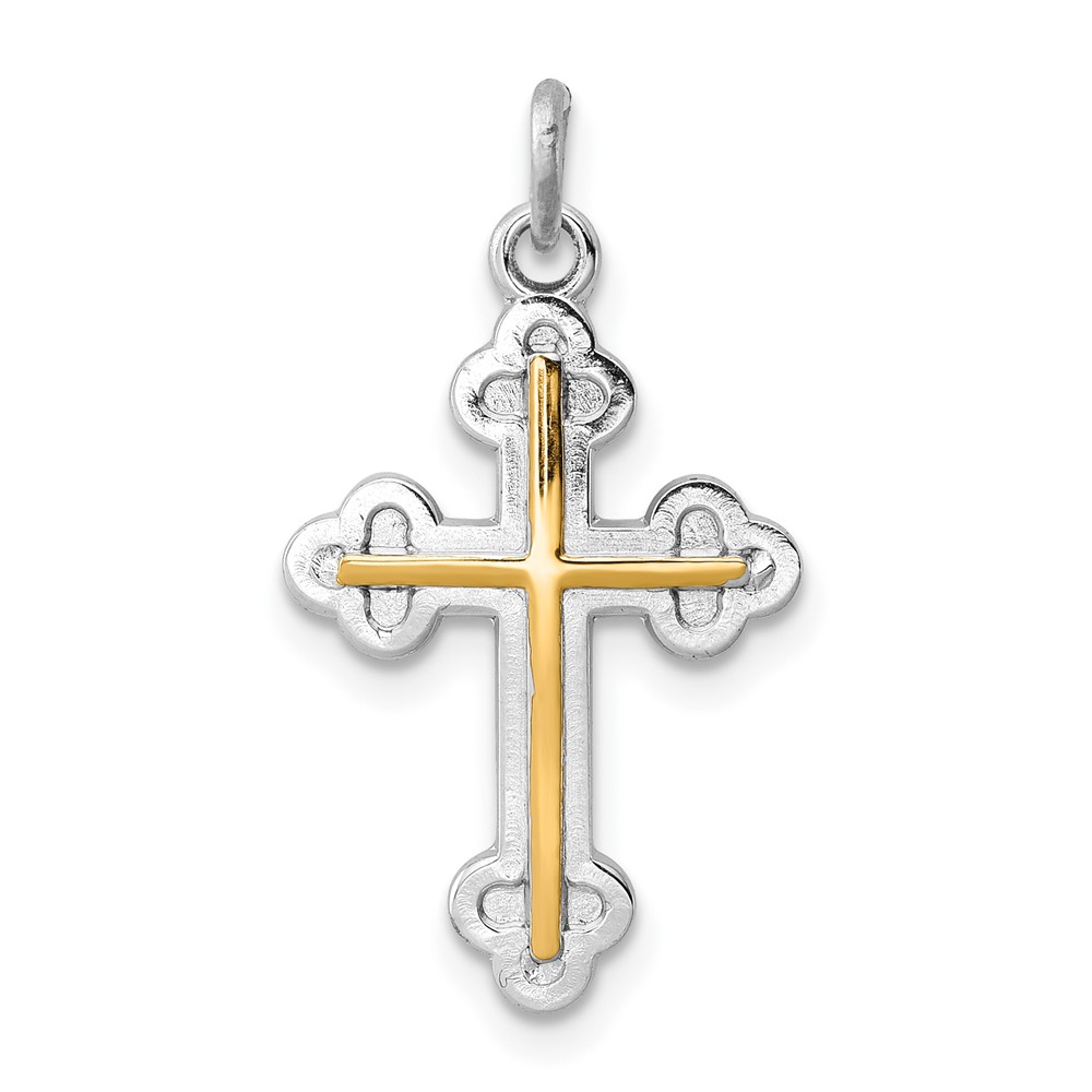 Sterling Silver Platinum-plated & 18k Gold-plated Cross Charm