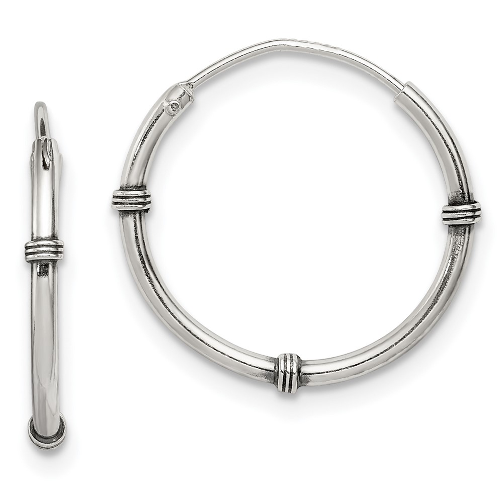 Sterling Silver Polished and Antiqued Endless Hoop Earrings