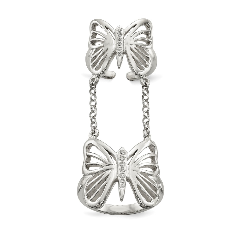 Sterling Silver Polished CZ Butterfly Double Finger Ring