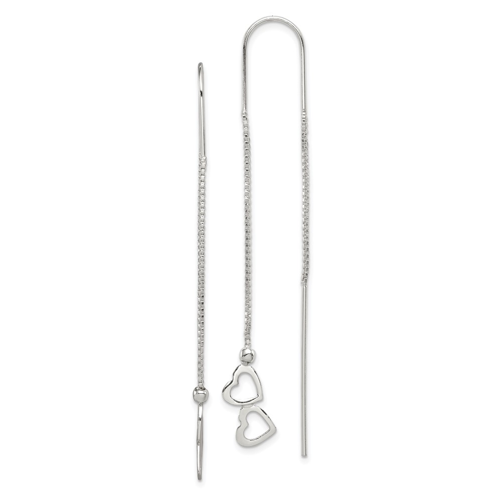 Sterling Silver Polished Double Heart Threader Earrings