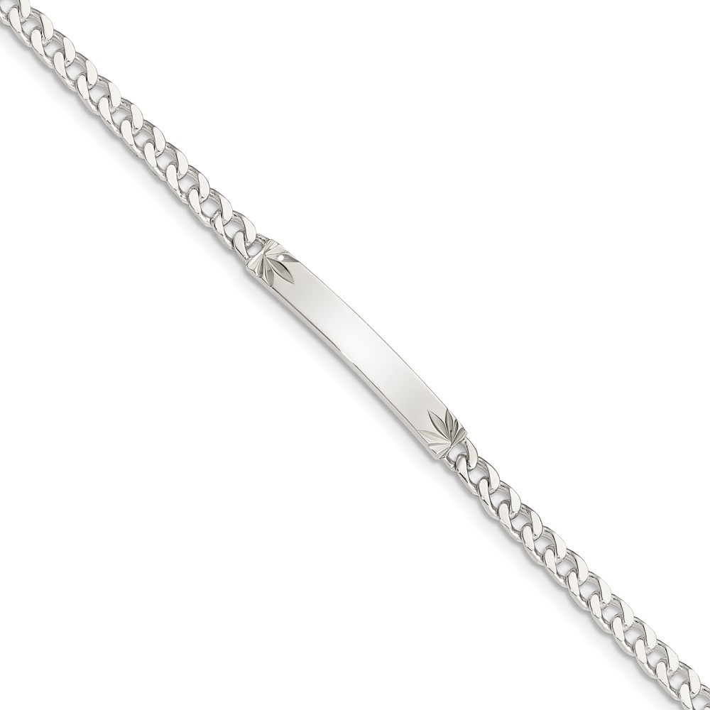 Sterling Silver Polished Engraveable Curb Link ID Bracelet