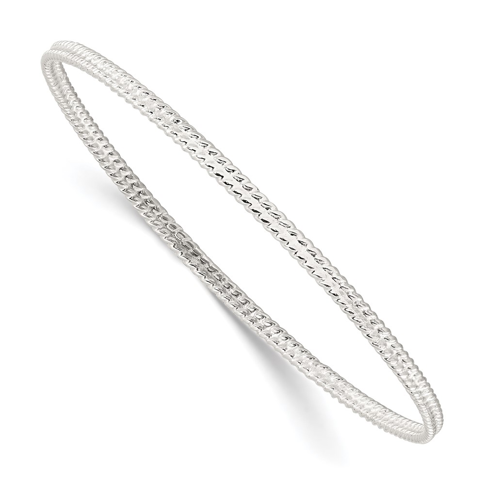 Sterling Silver Polished Textured Slip-on Bangle Bracelet
