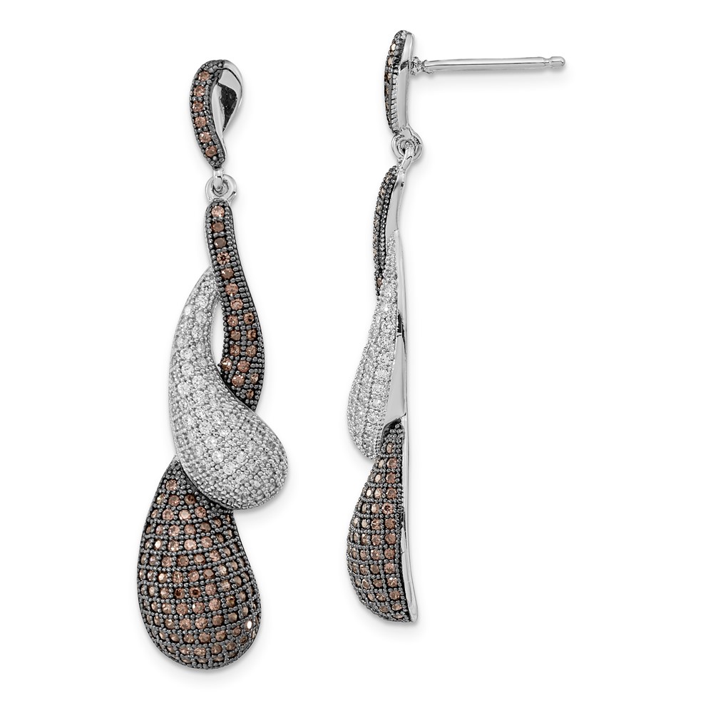 Sterling Silver Rhodium-plated Brown & Clear CZ Dangle Post Earrings