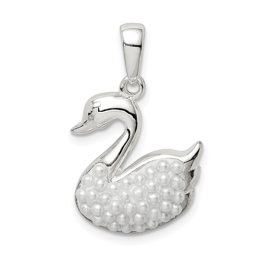 Sterling Silver Rhodium-plated Imitation Pearl Swan Pendant
