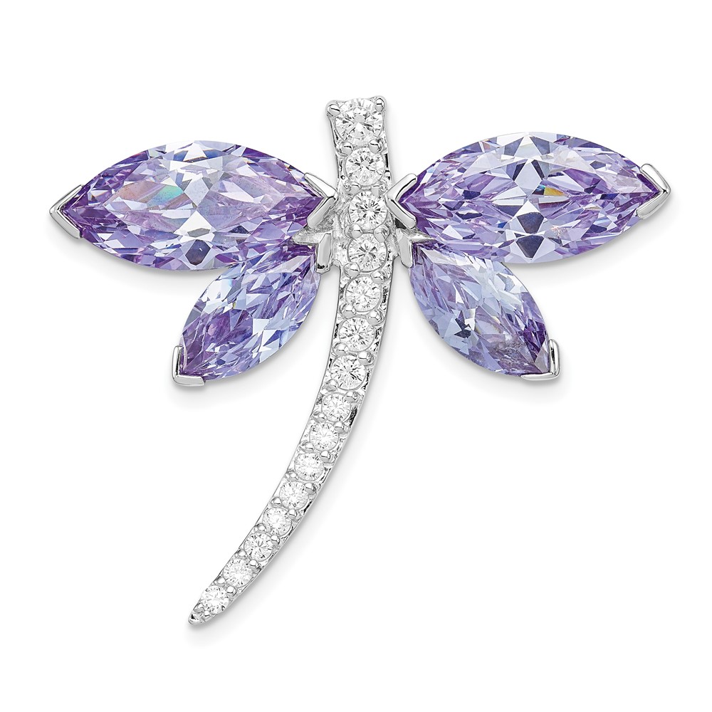 Sterling Silver Rhodium-plated Lavender CZ Dragonfly Slide