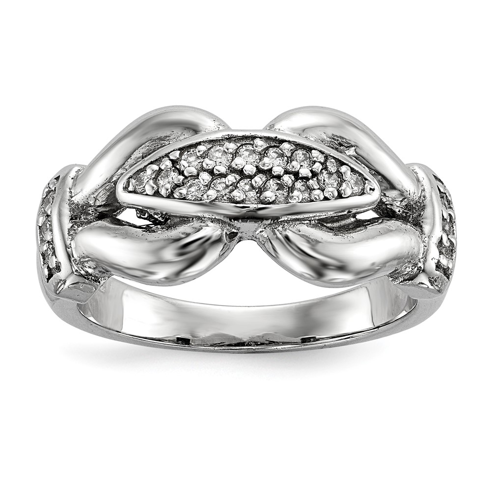 Sterling Silver Rhodium-plated Polished and Textured Fancy CZ Ring