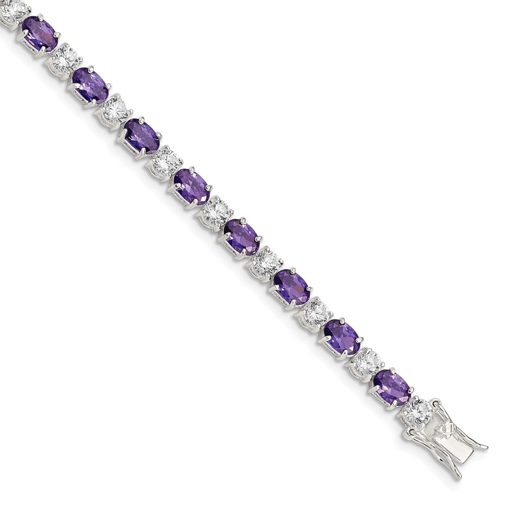 Sterling Silver Rhodium-plated Purple and Clear CZ Bracelet