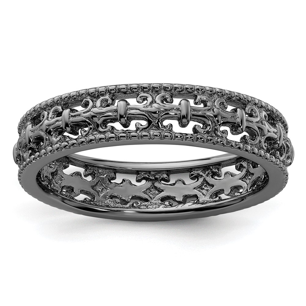 Sterling Silver Stackable Expressions Black-plated Carved Band