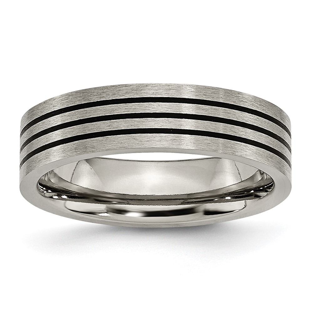 Titanium Satin and Polished Black Enamel Striped 6mm Flat Band